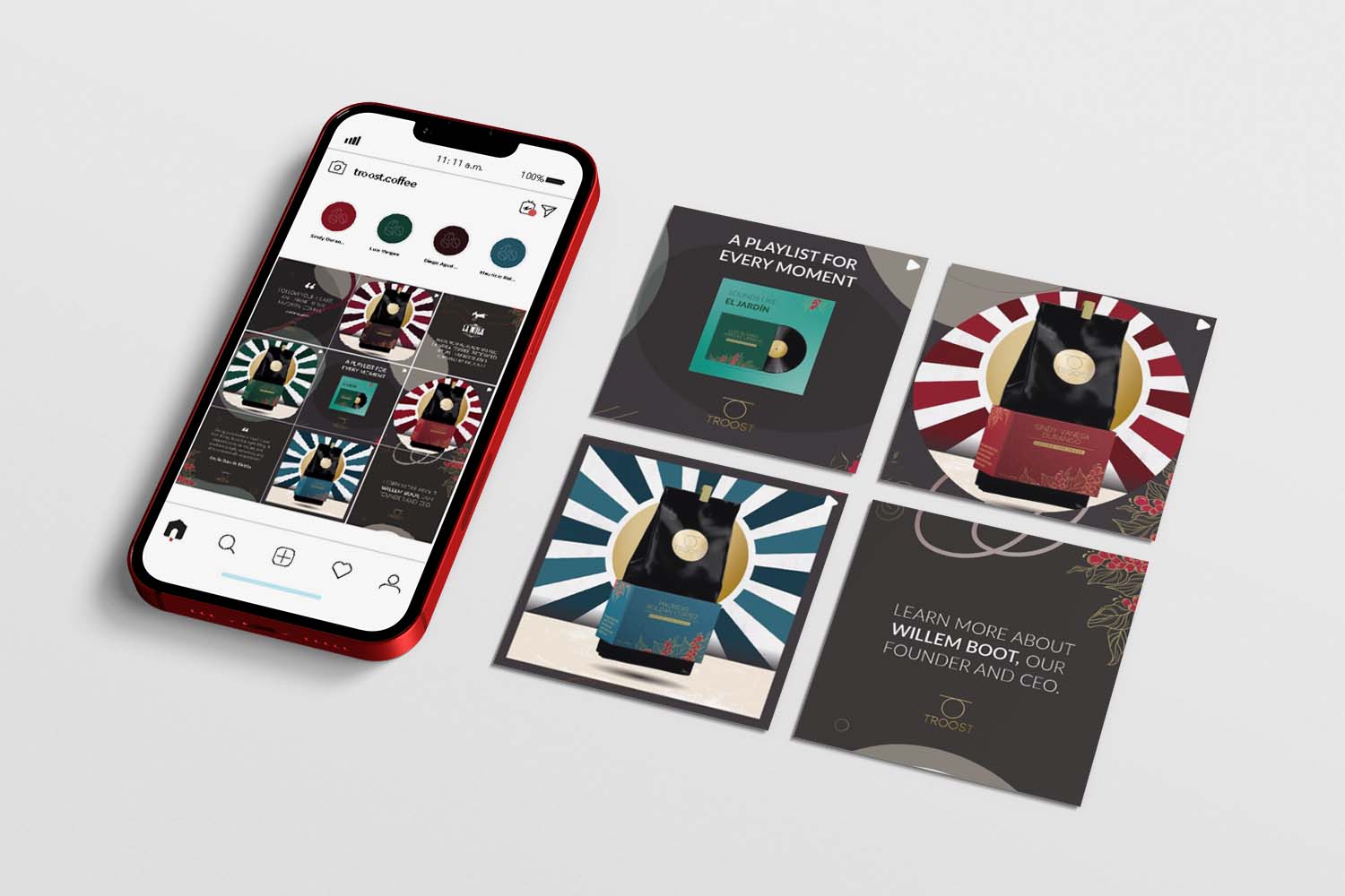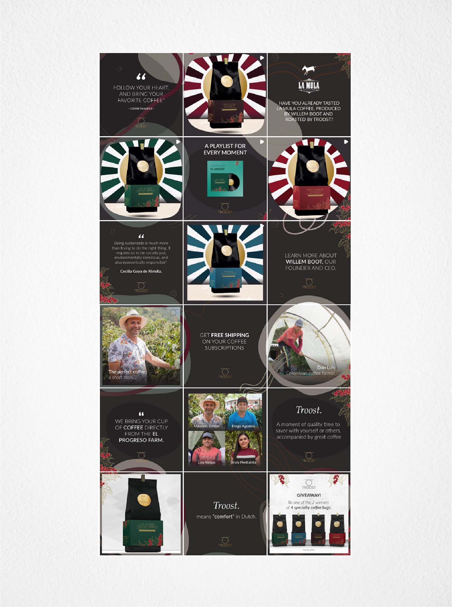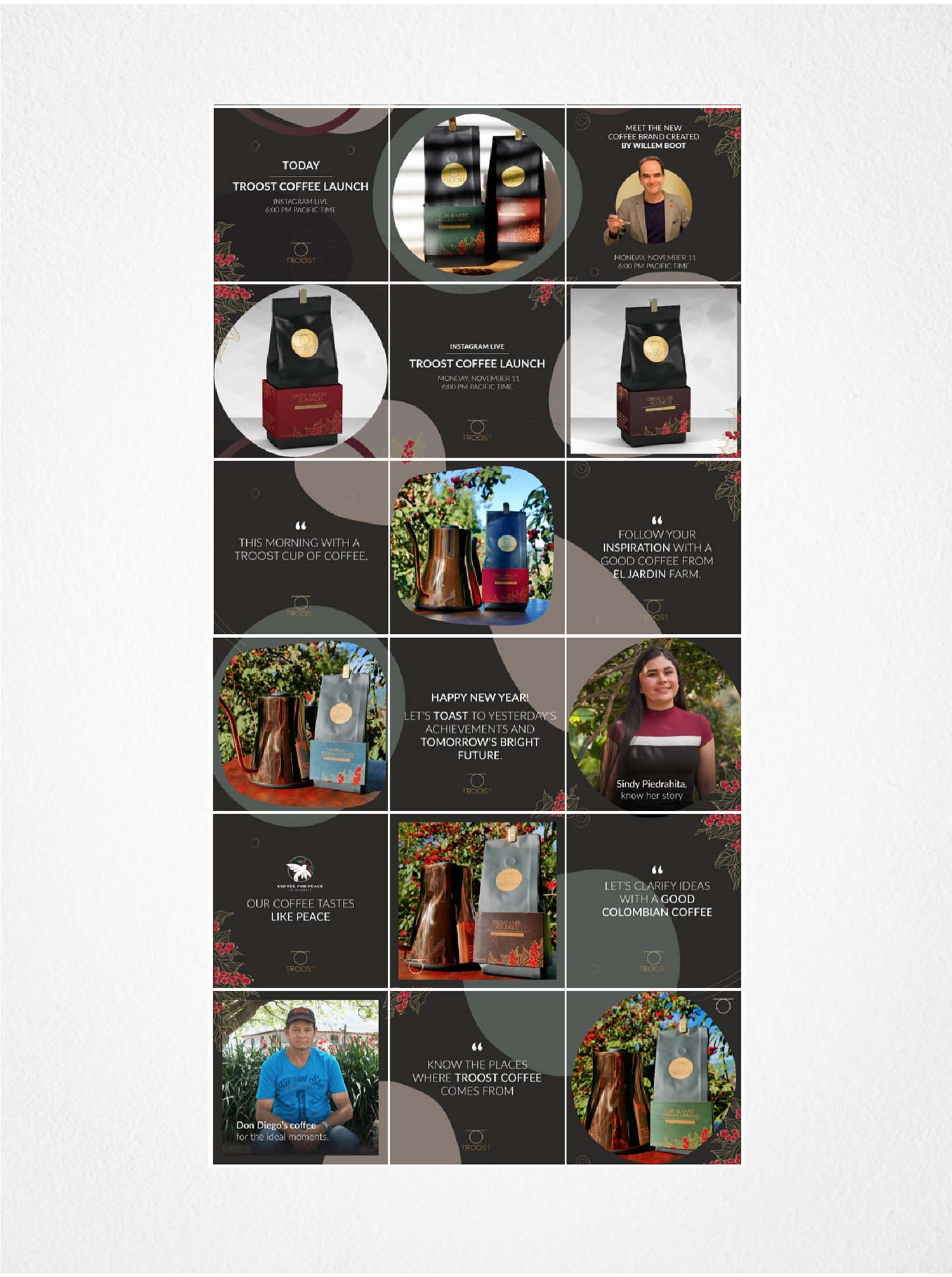 Nuestro enfoque se centró en garantizar que las comunicaciones de Troost Coffee fueran acertivas y atractivas, transmitiendo la calidad excepcional de su café colombiano y la experiencia trascendental que acompaña cada taza.